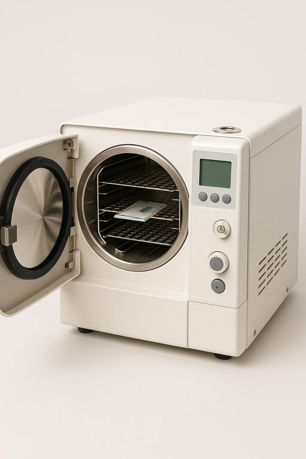 Специализированный медицинский прибор, который стерилизует многоразовые стоматологические инструменты насыщенным паром под высоким давлением.